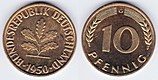 ![]() | 104263 | German Federal Republic | 1950-F | km108 | 10 Pfennig (1950-2001) | $0.75 | A |