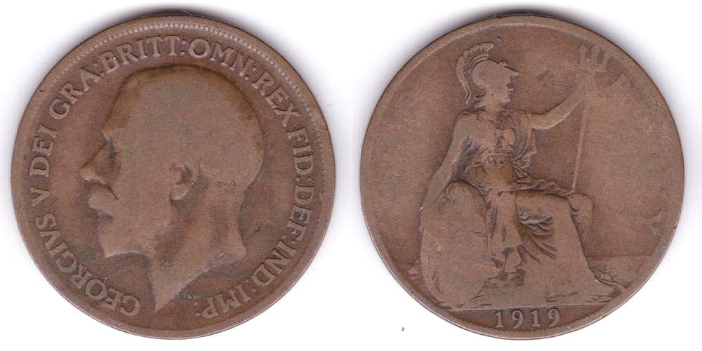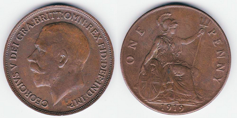 ![]() | 69970 | Great Britain | 1919 | km810 | 1 Penny (1911-1926) (2 available) | $3.50 | A |