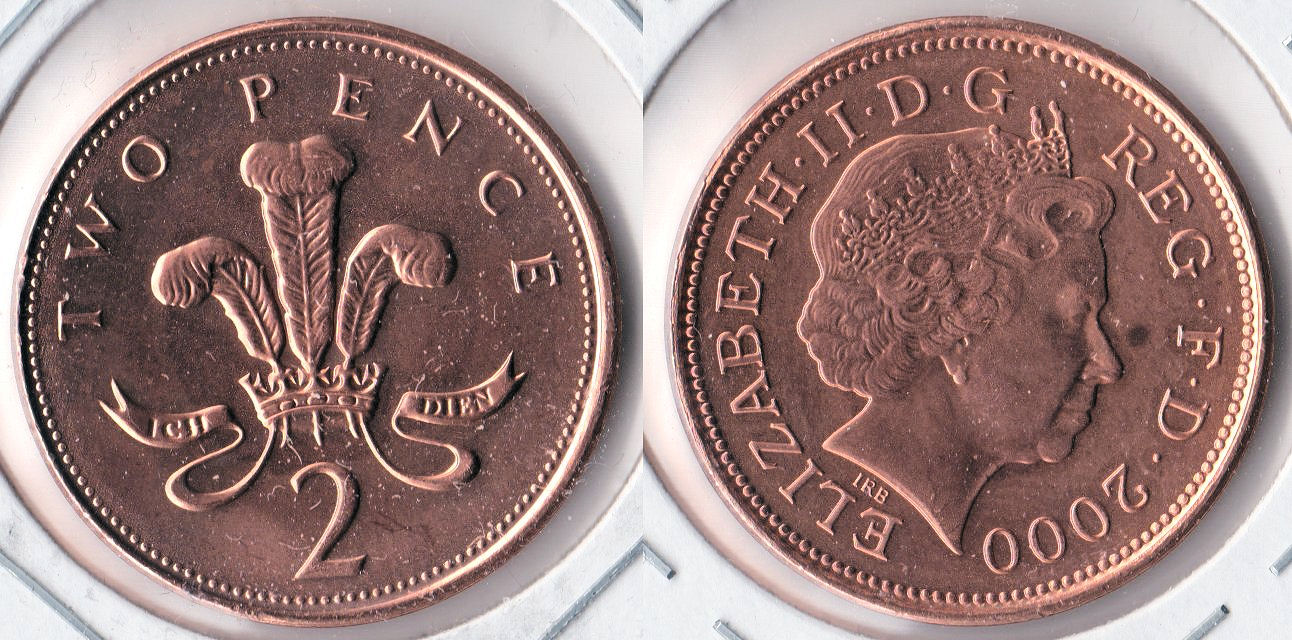![]() | 77964 | Great Britain | 2000 | km987 | 2 Pence (1998-2008) copper plated steel (2 available) | $0.25 | A |