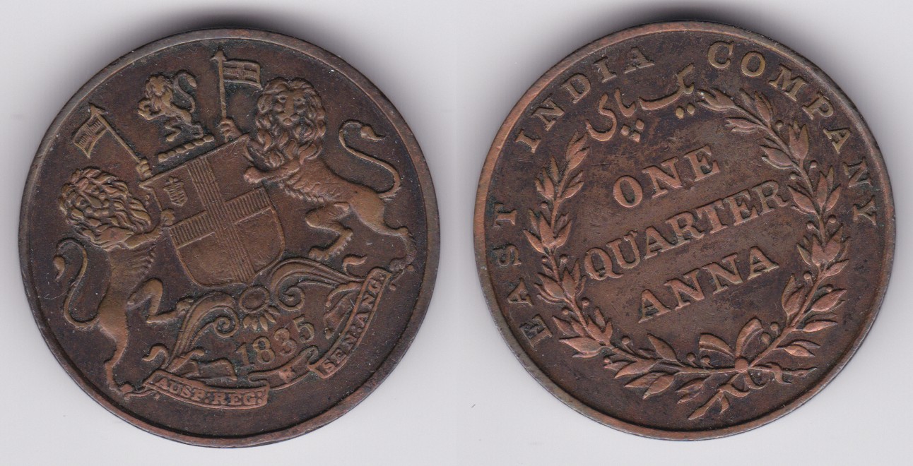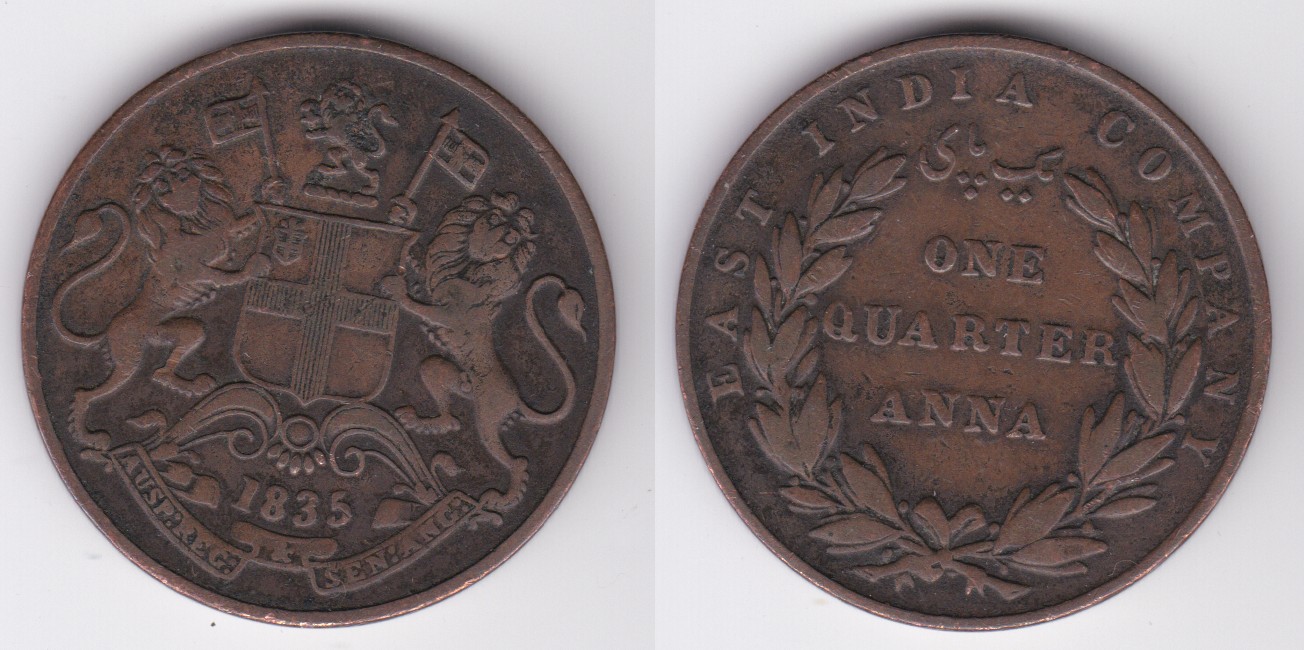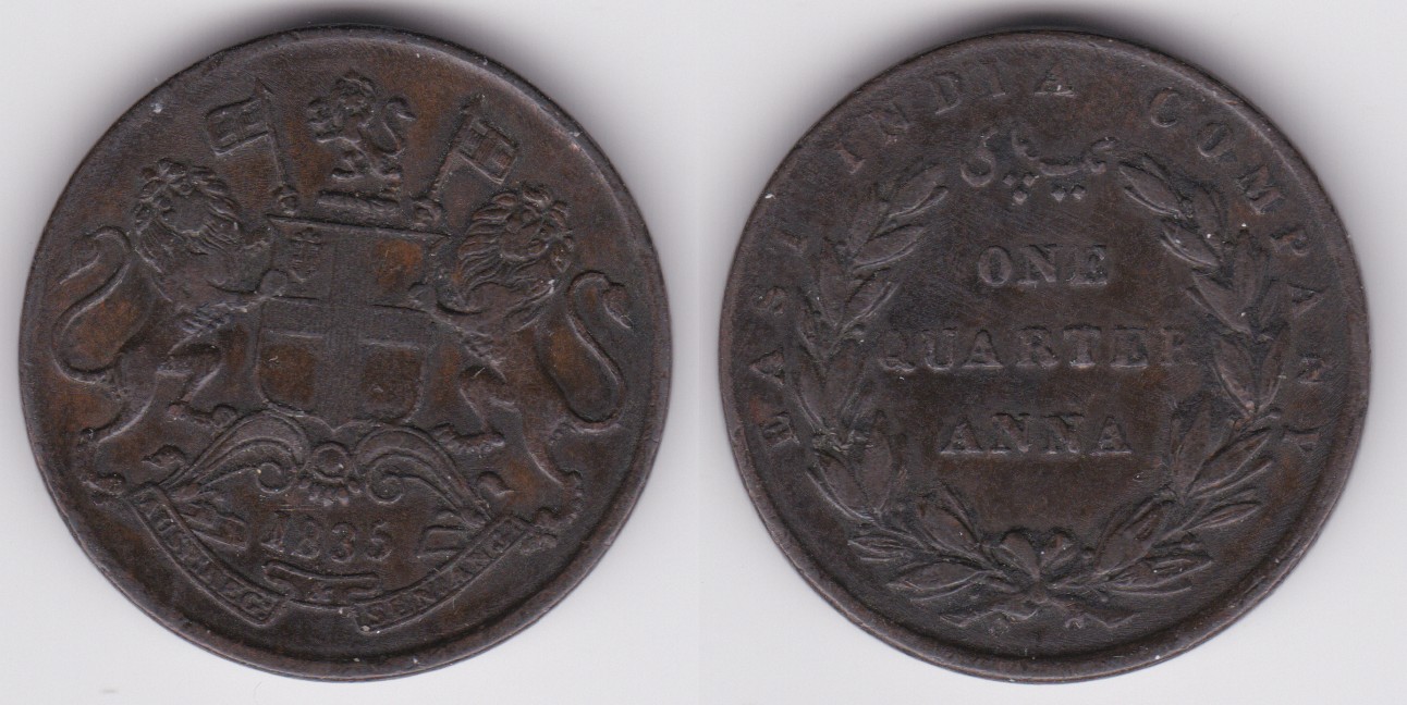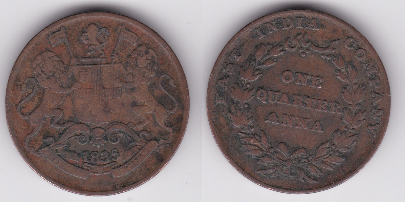 ![]() | 91824 | India - British | 1835 | km446 | 1/4 Anna (1835) Variety 2 | $8.00 | B |