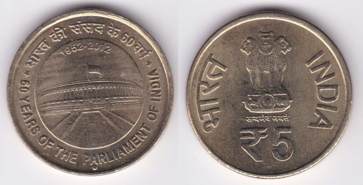 5 Rupees (2012) 60 yrs. Indian Parliament