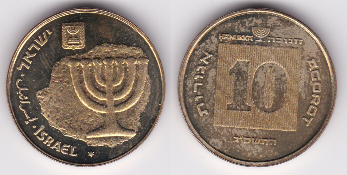 ![]() | 113803 | Israel | 1995 | km173 | 10 Agorot (1987--) Hanukkah | $3.50 | B |