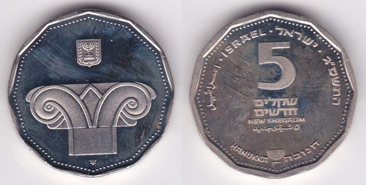 | 113799 | Israel | - | km217 | 5 New Sheqalim (1991--) Hanukka | $10.00 | B |