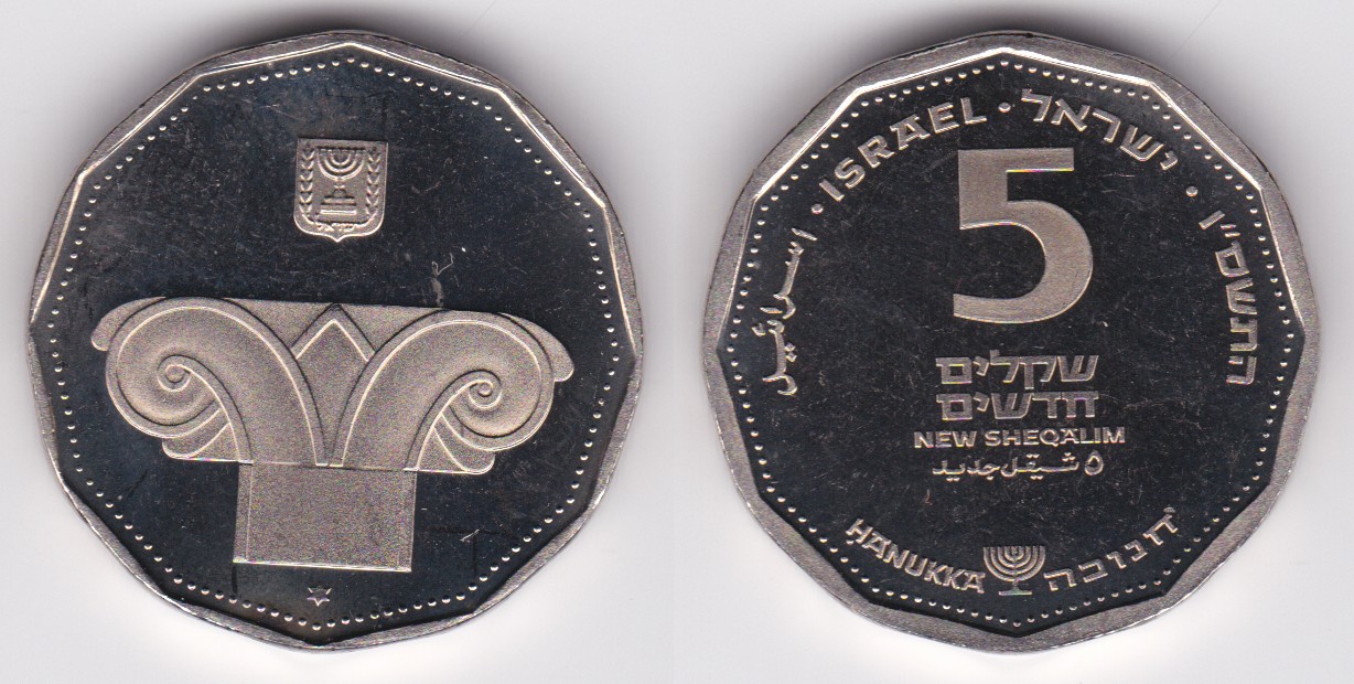 | 113829 | Israel | 2005 | km217 | 5 New Sheqalim (1991--) Hanukka | $9.00 | B |