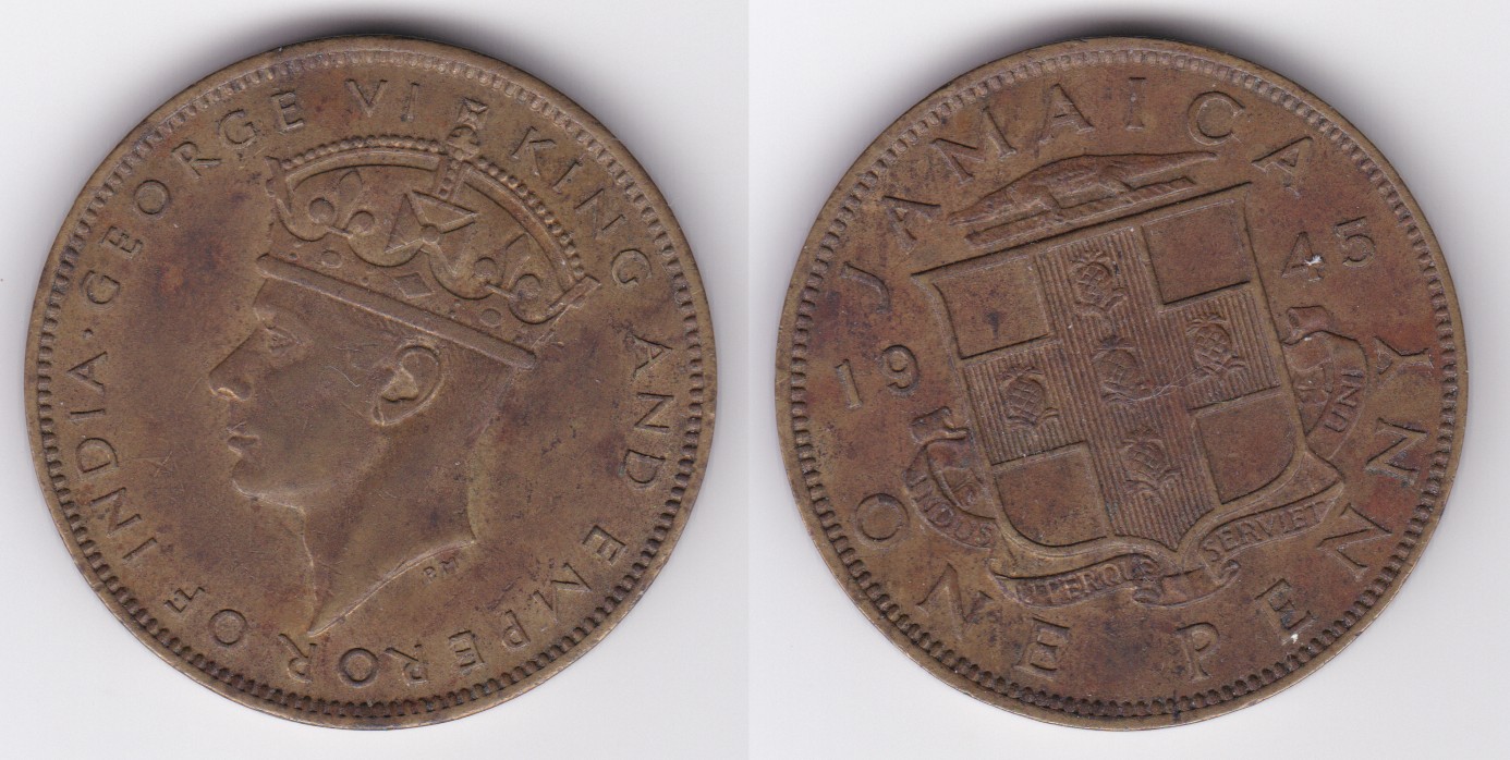 ![]() | 103038 | Jamaica | 1945 | km32 | 1 Penny (1938-1947) | $0.75 | A |