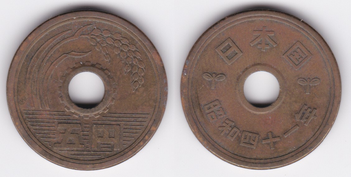 | 113205 | Japan | 1966 | y72a | 5 Yen (1959-1989) new script | $0.25 | A |