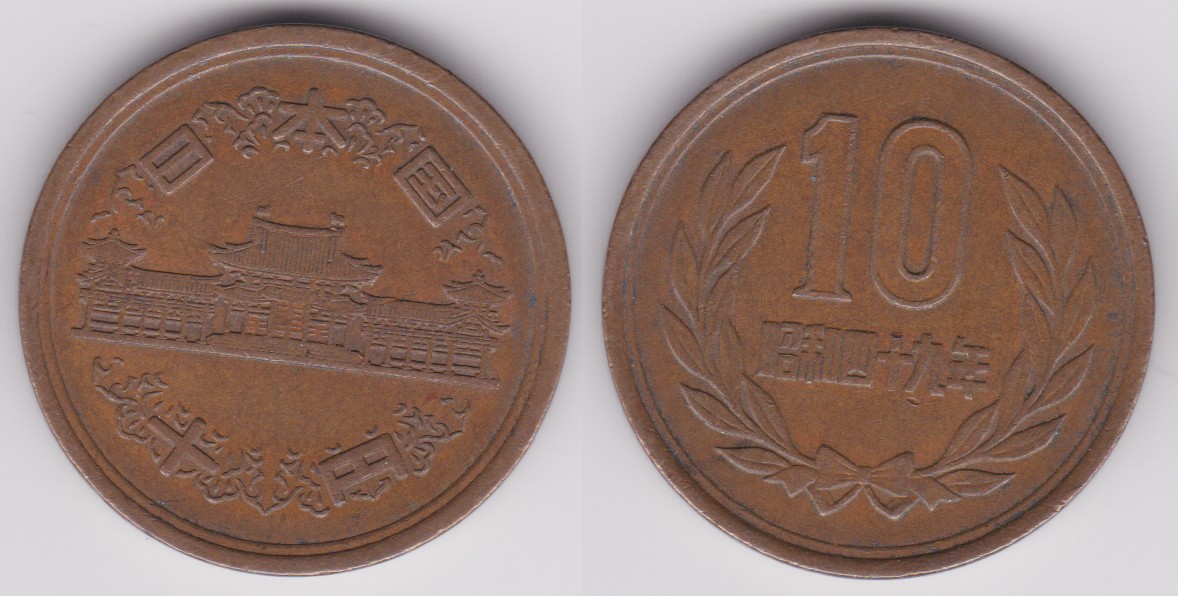 ![]() | 86570 | Japan | 1974 | y73a | 10 Yen (1959-1988) plain edge | $0.25 | A |