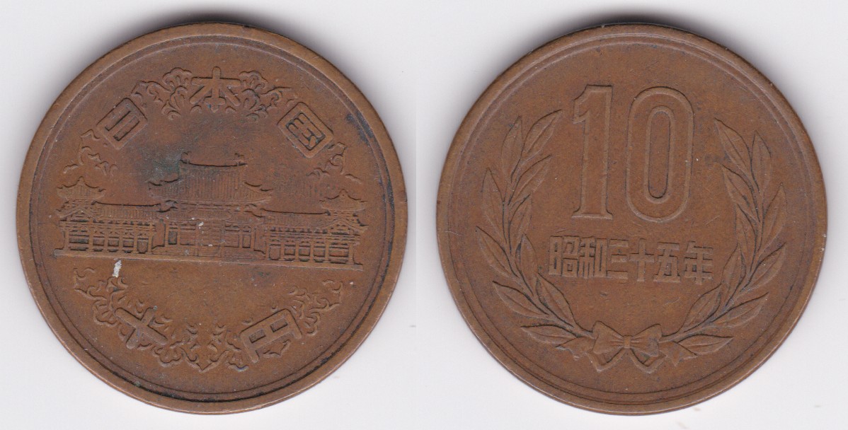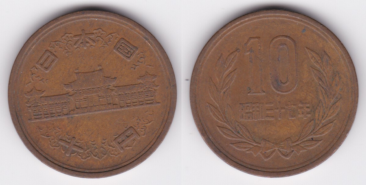 ![]() | 113192 | Japan | 1963 | y73a | 10 Yen (1959-1988) plain edge | $0.25 | A |