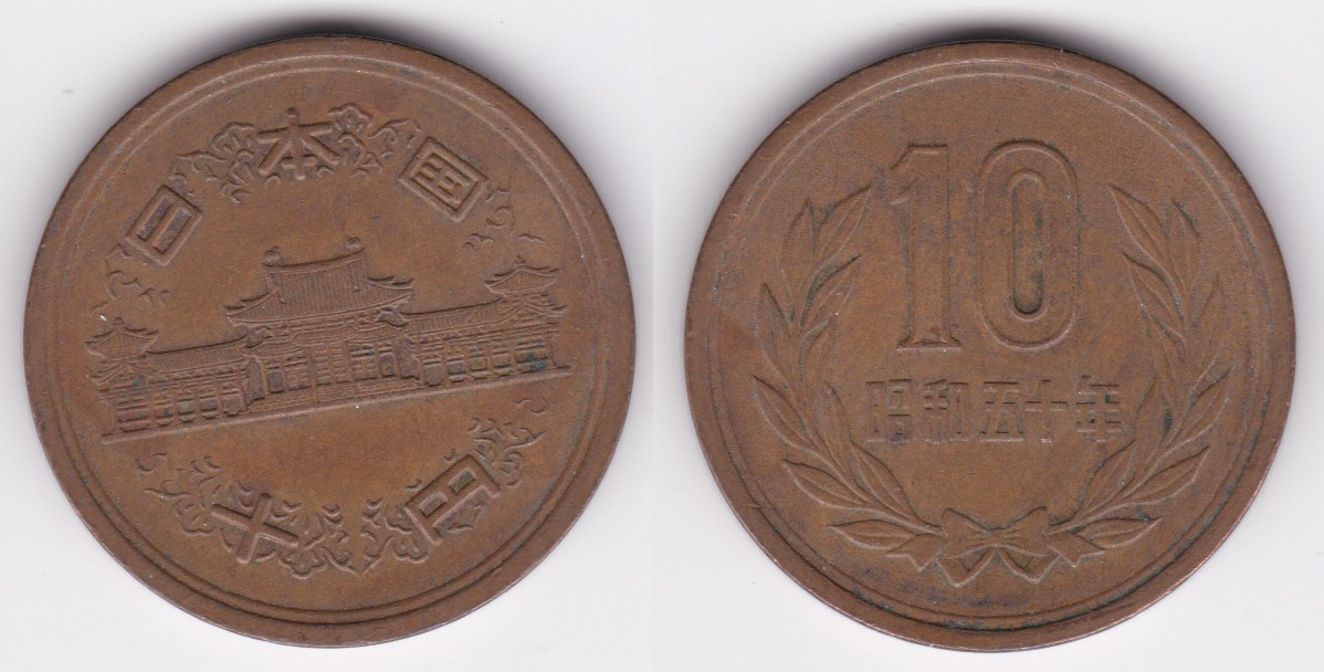 ![]() | 108921 | Japan | 1975 | y73a | 10 Yen (1959-1988) plain edge | $0.25 | A |