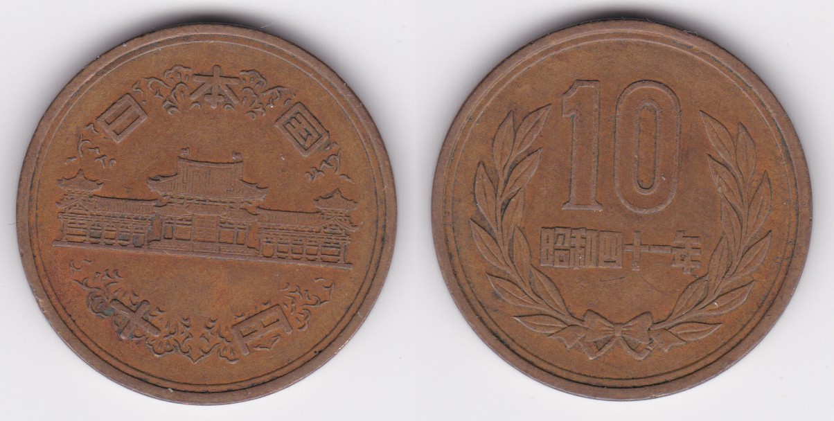 ![]() | 111747 | Japan | 1966 | y73a | 10 Yen (1959-1988) plain edge | $0.25 | A |