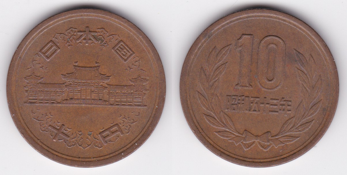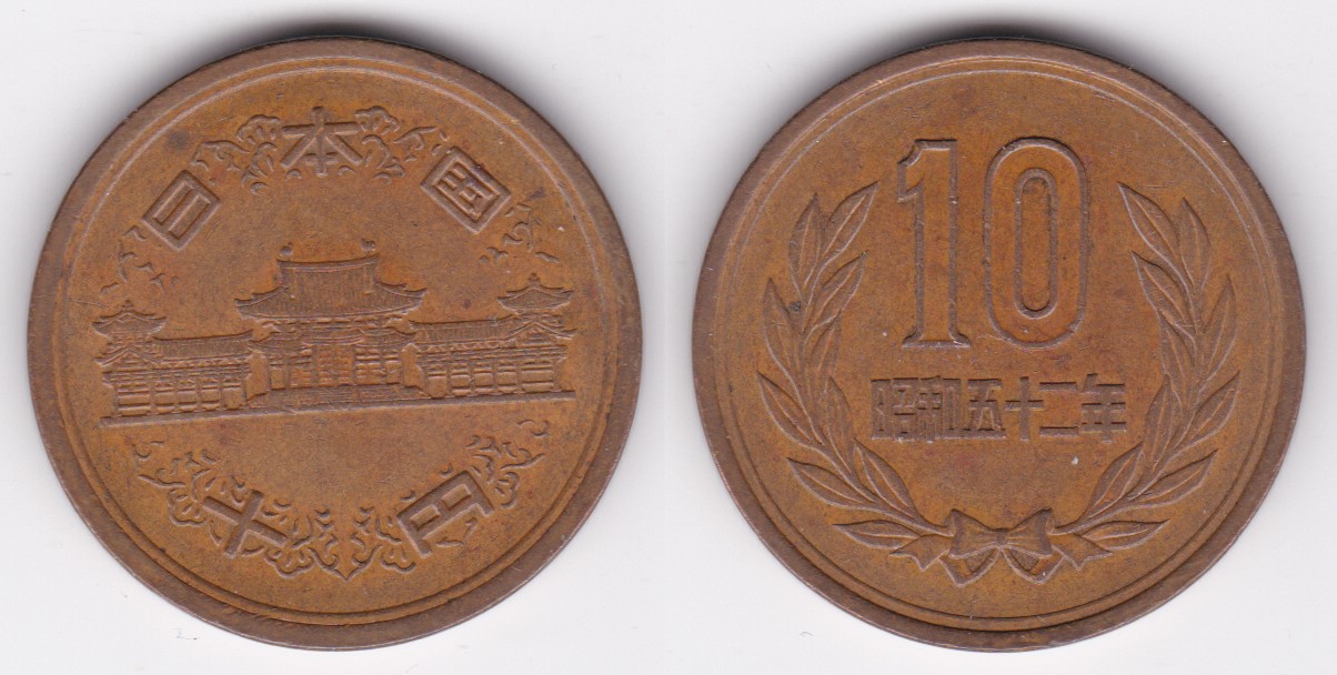 ![]() | 111750 | Japan | 1977 | y73a | 10 Yen (1959-1988) plain edge | $0.25 | A |