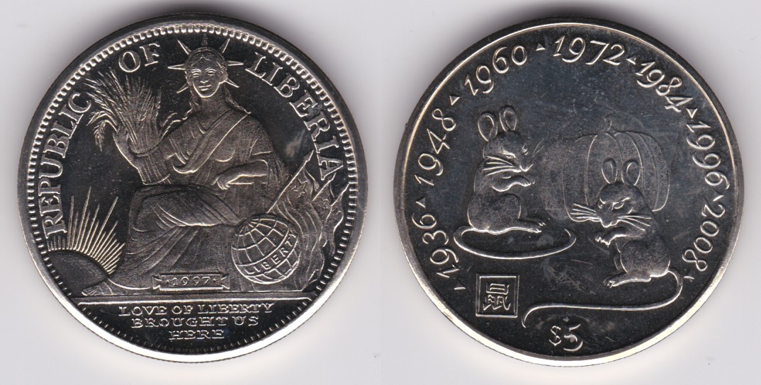 5 Dollars (1997) Chin. Astrology - two rats and pumpkin