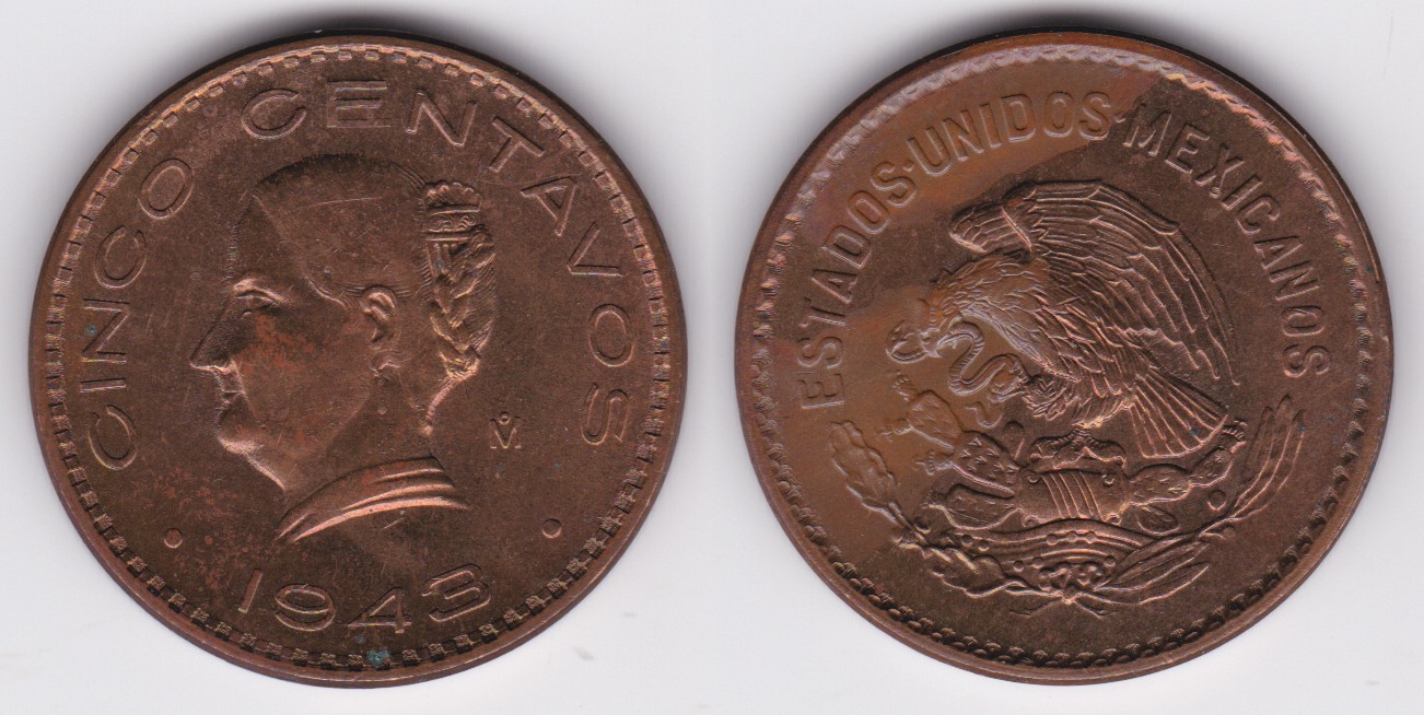 ![]() | 110297 | Mexico | 1943 | km424 | 5 Centavos (1942-1955) | $0.25 | A |
