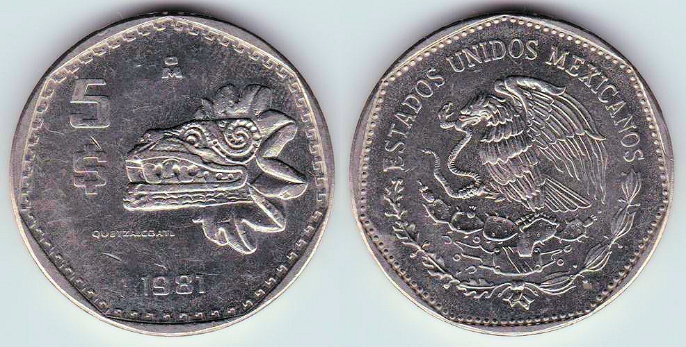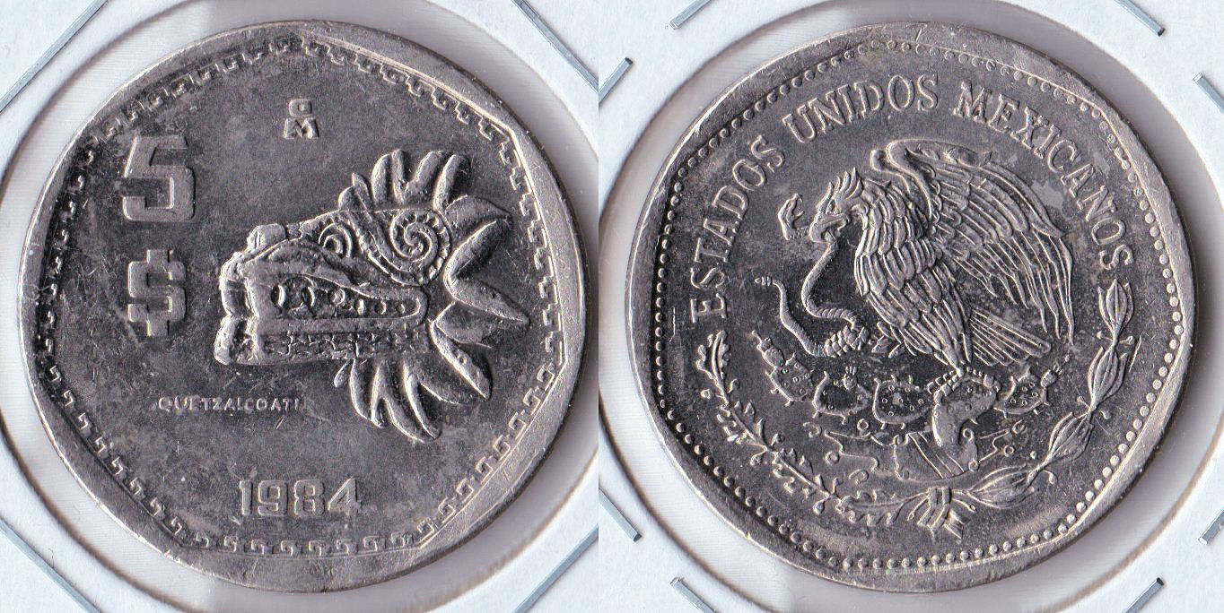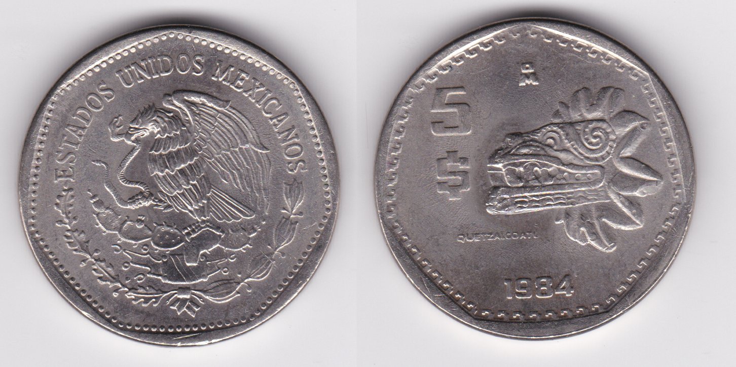 ![]() | 104448 | Mexico | 1984 | km485 | 5 Pesos (1980-1985) Quetzalcoatl | $2.50 | A |