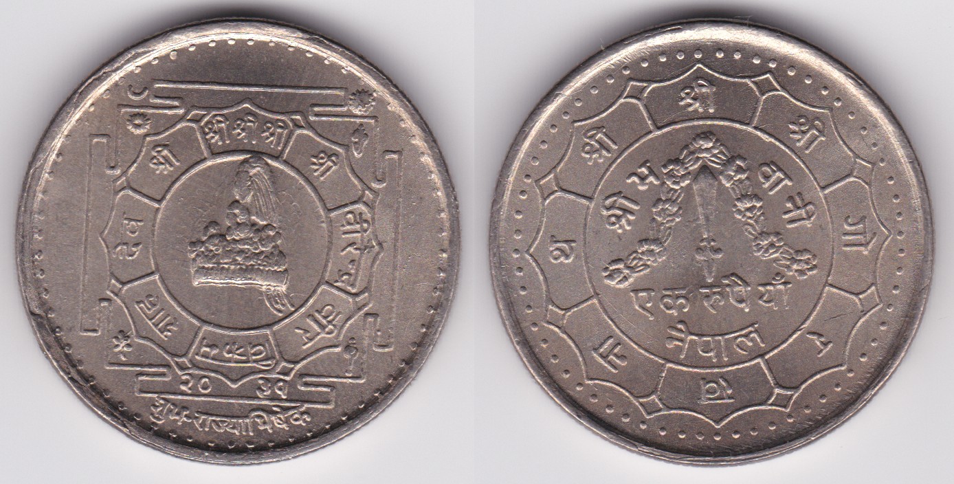 1 Rupee (1973) Birendra Coronation