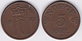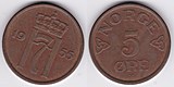 ![]() | 110206 | Norway | 1955 | km400 | 5 Ore (1952-1957) | $1.75 | A |