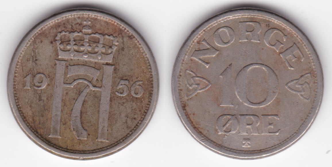 ![]() | 110502 | Norway | 1955 | km396 | 10 Ore (1951-1957) | $0.25 | A |