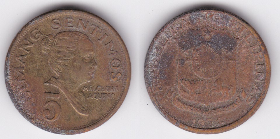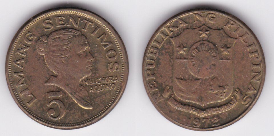 ![]() | 109505 | Philippines | 1972 | km197 | 5 Sentimos (1967-1974) (2 available) | $0.25 | A |