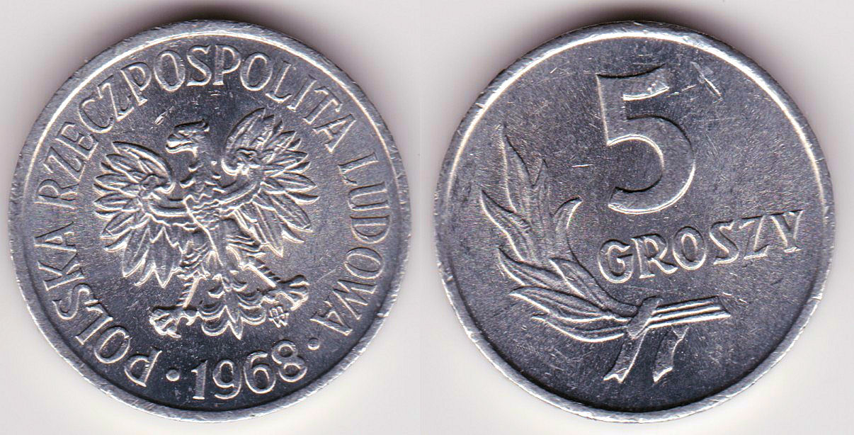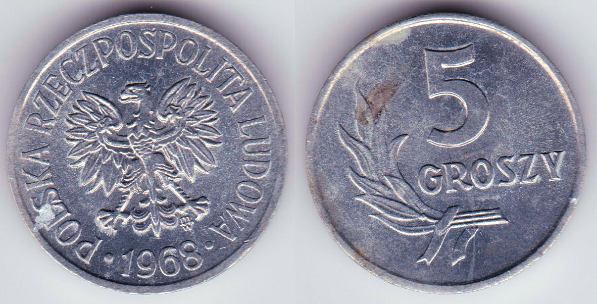 ![]() | 79677 | Poland | 1968 | yA46 | 5 Groszy (1958-1972) aluminum | $0.25 | A |