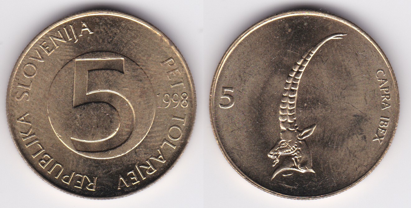 ![]() | 114301 | Slovenia | 1998 | km6 | 5 Tolarjev (1992-2006) (4 available) | $1.00 | A |