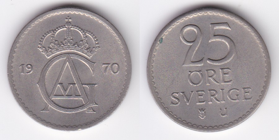 ![]() | 114154 | Sweden | 1970 | km836 | 25 Ore (1962-1973) | $0.25 | A |