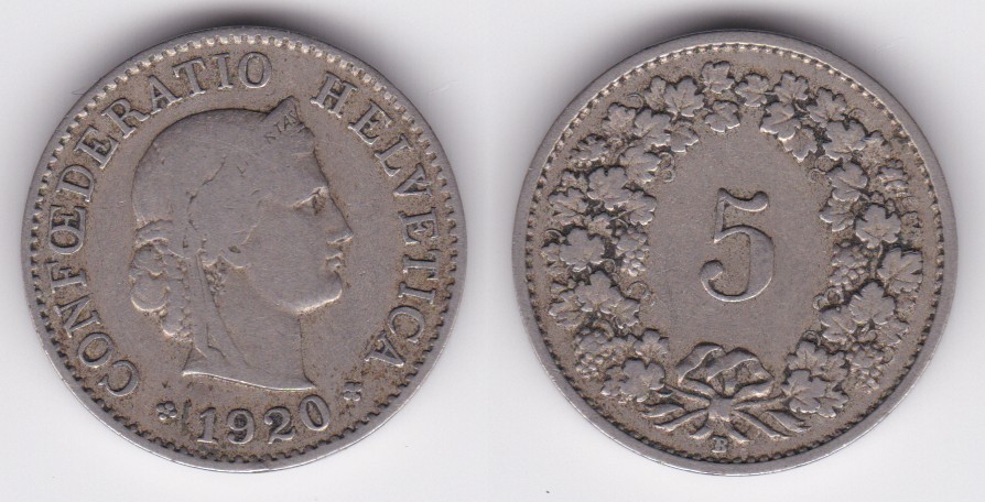 | 114193 | Switzerland | 1920 | km26 | 5 Rappen (1879-1980) copper-nickel | $0.50 | A |