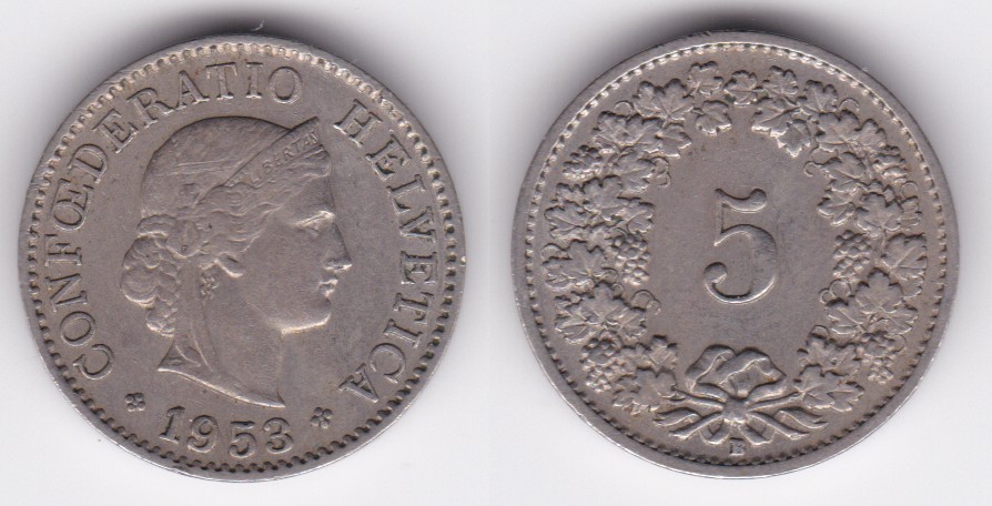| 114195 | Switzerland | 1953 | km26 | 5 Rappen (1879-1980) copper-nickel | $0.25 | A |