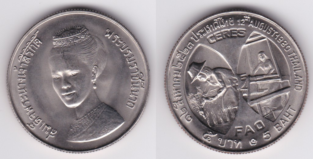 5 Baht (1980) Queen / FAO Ceres Medal