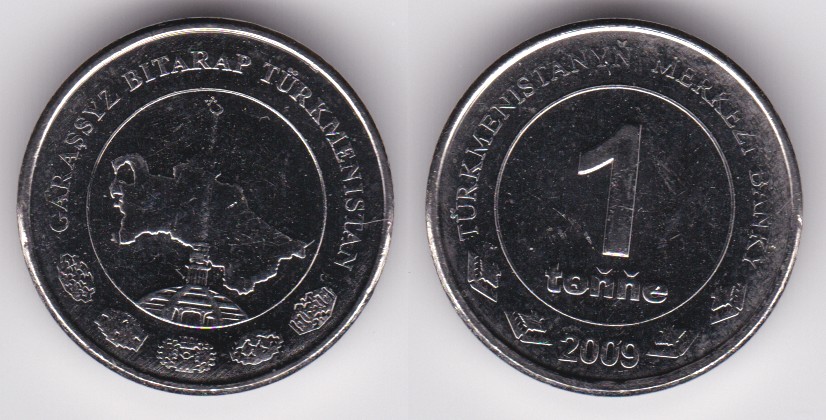 1 Tenge (2009) Spire over country map