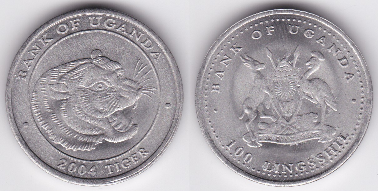 100 Shillings (2004) Year of the tiger (nickel-plated steel)