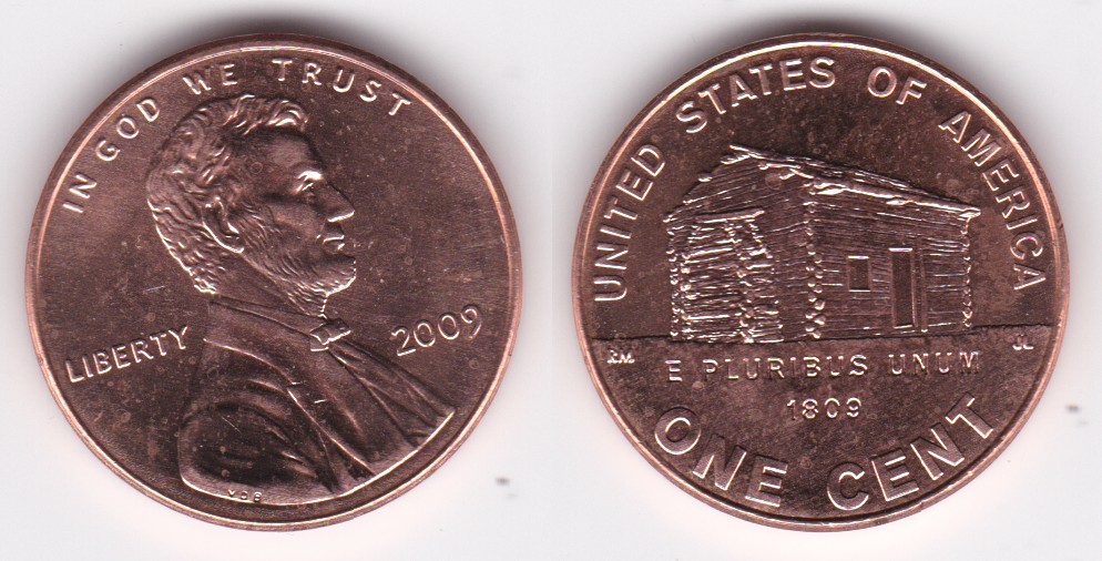 1 cent (2009) Log Cabin (copper-plated zinc)