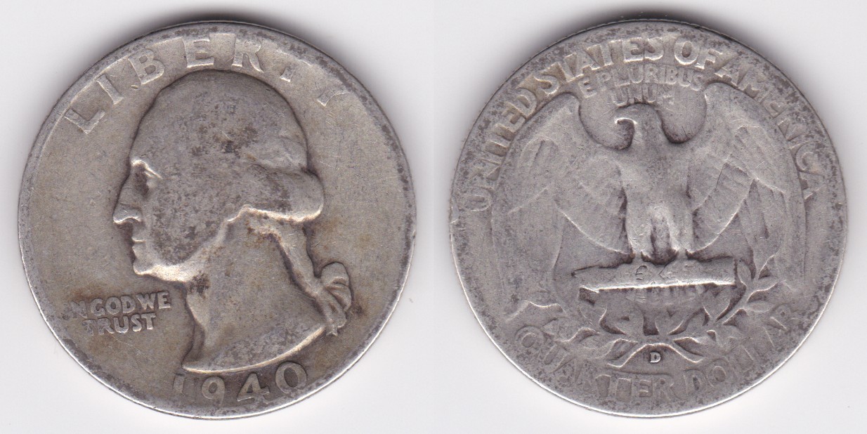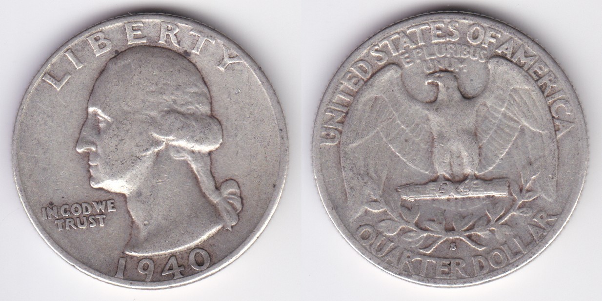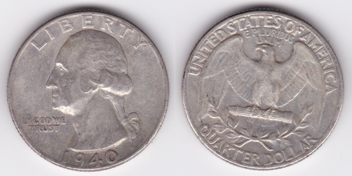 ![]() | 112883 | United States of America | 1940 | km164 | quarter dollar (1932-1964) Washington silver | $9.75 | A |