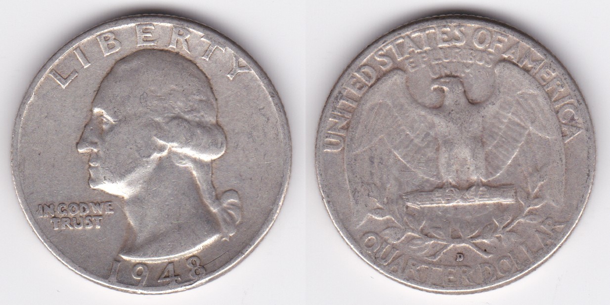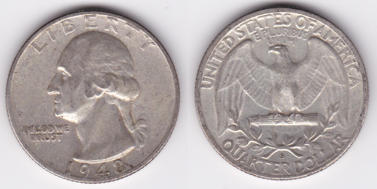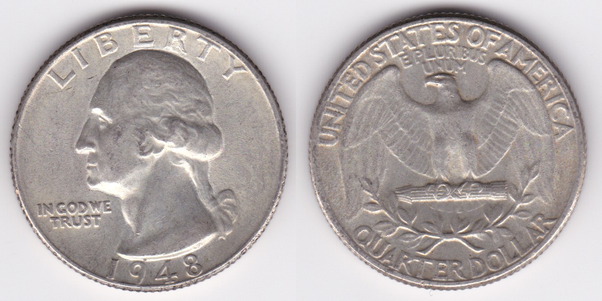 ![]() | 112870 | United States of America | 1948 | km164 | quarter dollar (1932-1964) Washington silver | $9.75 | A |