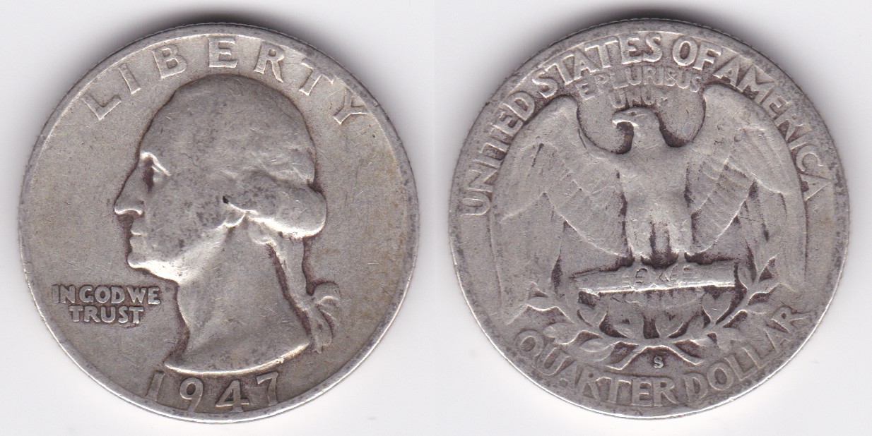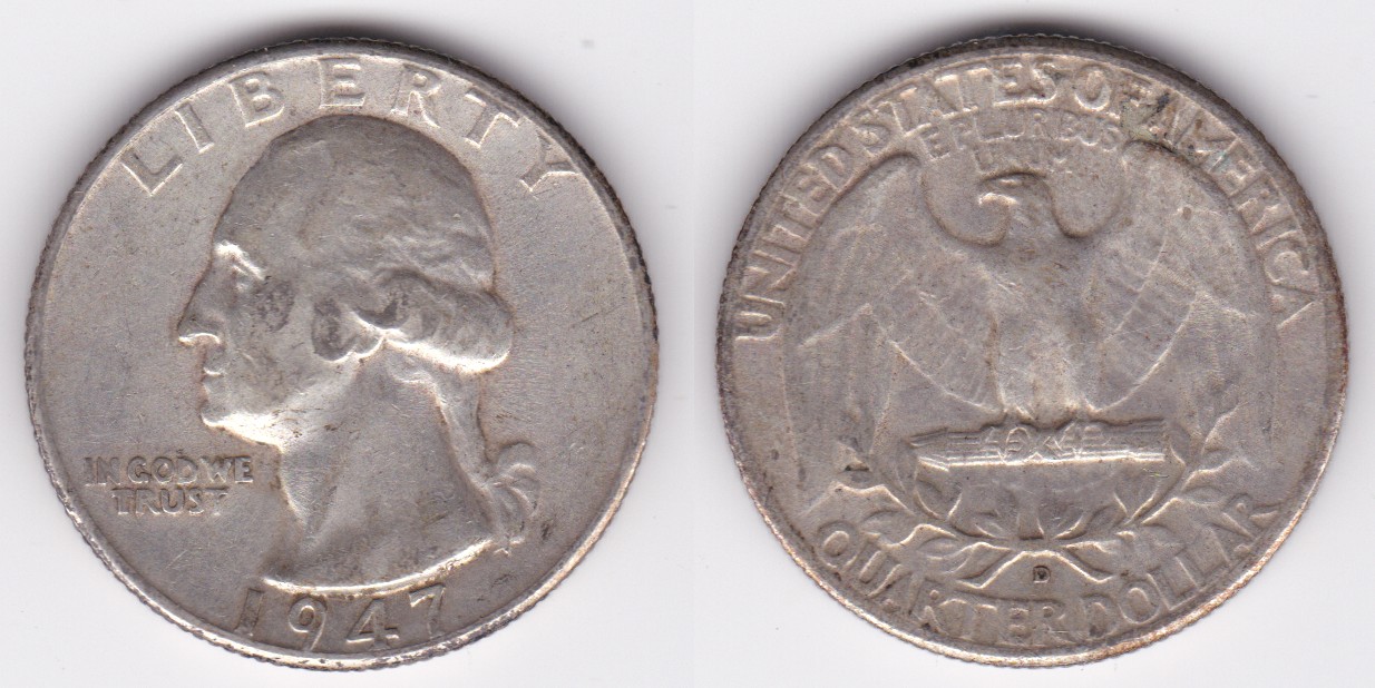 ![]() | 112873 | United States of America | 1947 | km164 | quarter dollar (1932-1964) Washington silver | $9.75 | A |