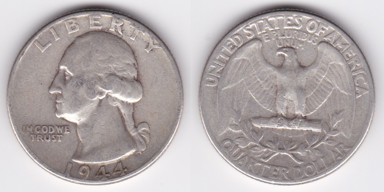![]() | 112891 | United States of America | 1944 | km164 | quarter dollar (1932-1964) Washington silver | $9.75 | A |