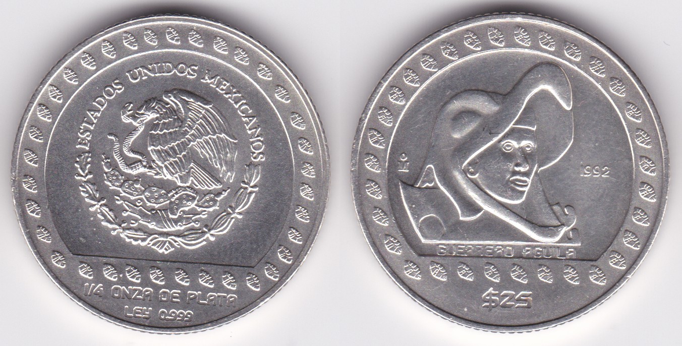 Mexico km554 25 Pesos (1992) Eagle Warior